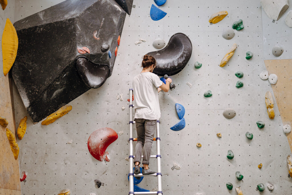 Bei uns hat jeder Boulder eine eigene Farbe – und genau diese farbigen Griffe und Tritte nutzt Du, um die Route zu klettern.